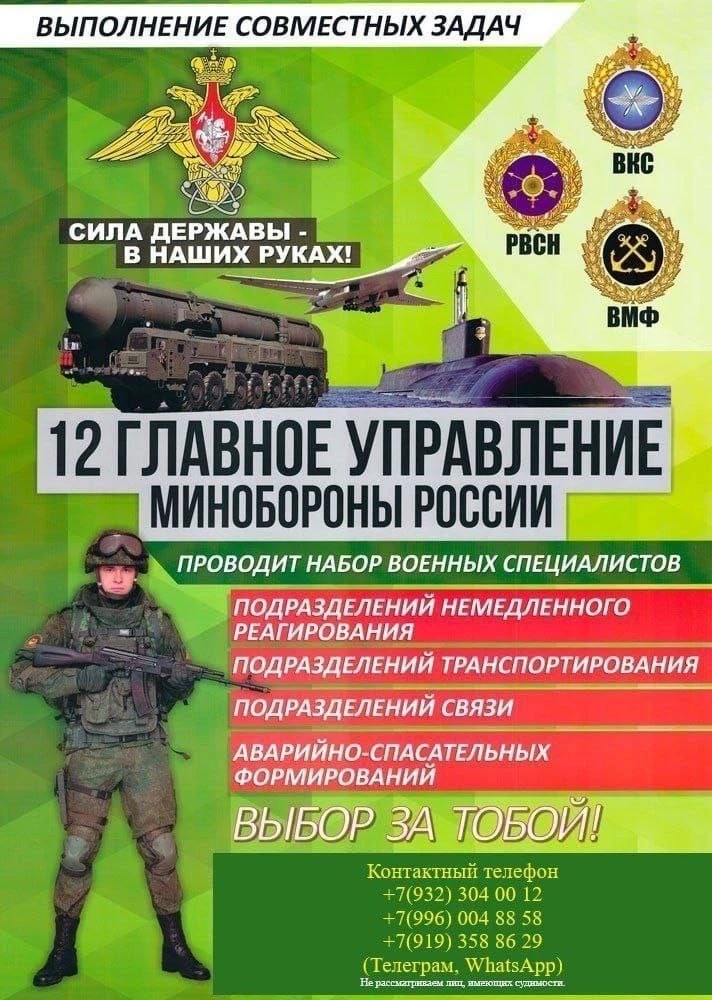 12 главное управление МИНОБОРОНЫ РОССИИ проводит набор военных специалистов: