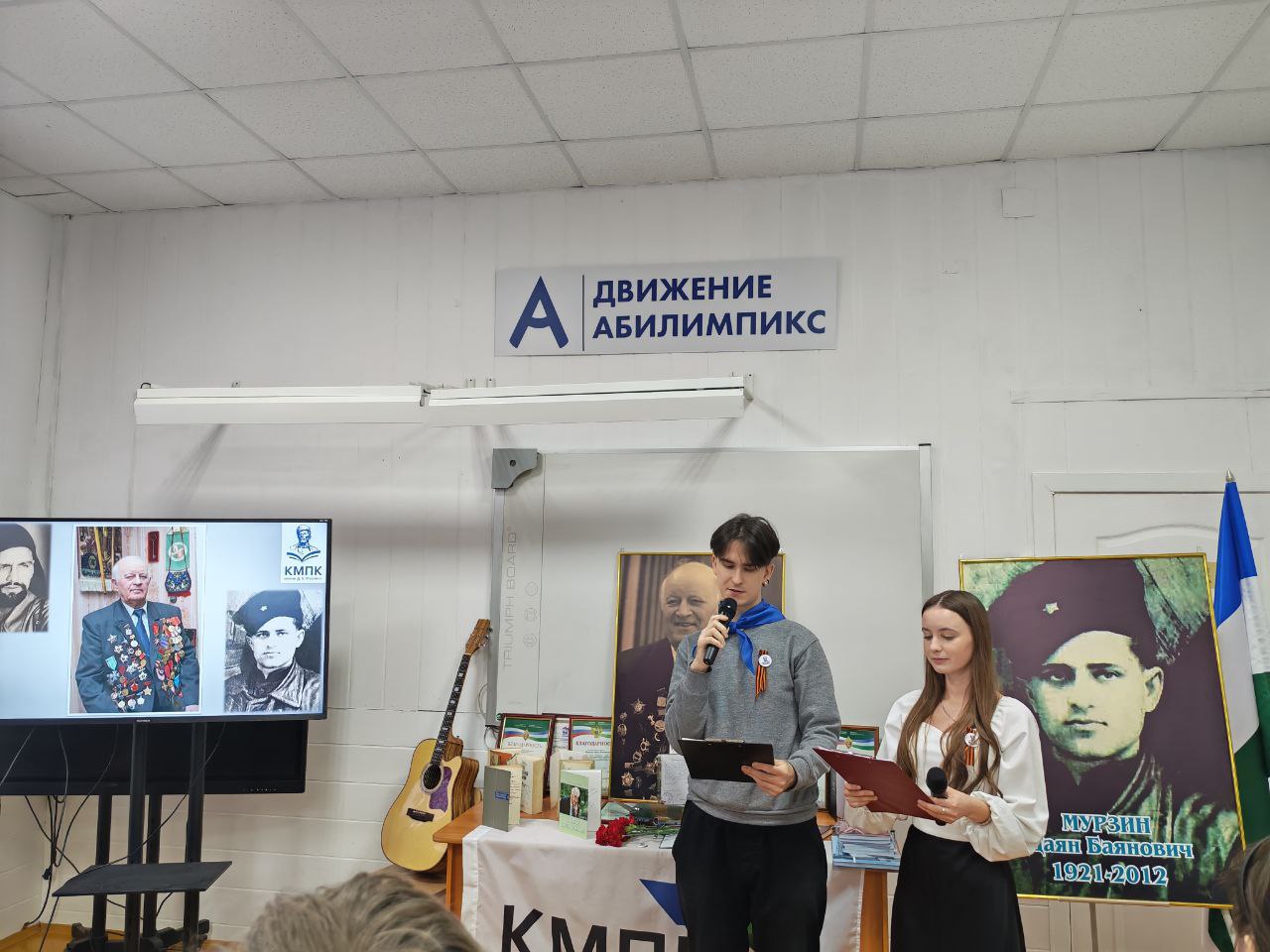 Мероприятие было проникнуто тёплой и насыщенной памятью о Даяне Баяновиче Мурзине. Мы прошли вместе с Героем весь его путь: от работы сельским учителем до командования партизанским отрядом, ставшим настоящей угрозой для нацистов в сердце Европы. Узнали о случае невероятной силы воли, когда он сам сделал себе операцию в лесу, и о его достойной жизни после войны — службе в прокуратуре и наставничестве для молодёжи.
