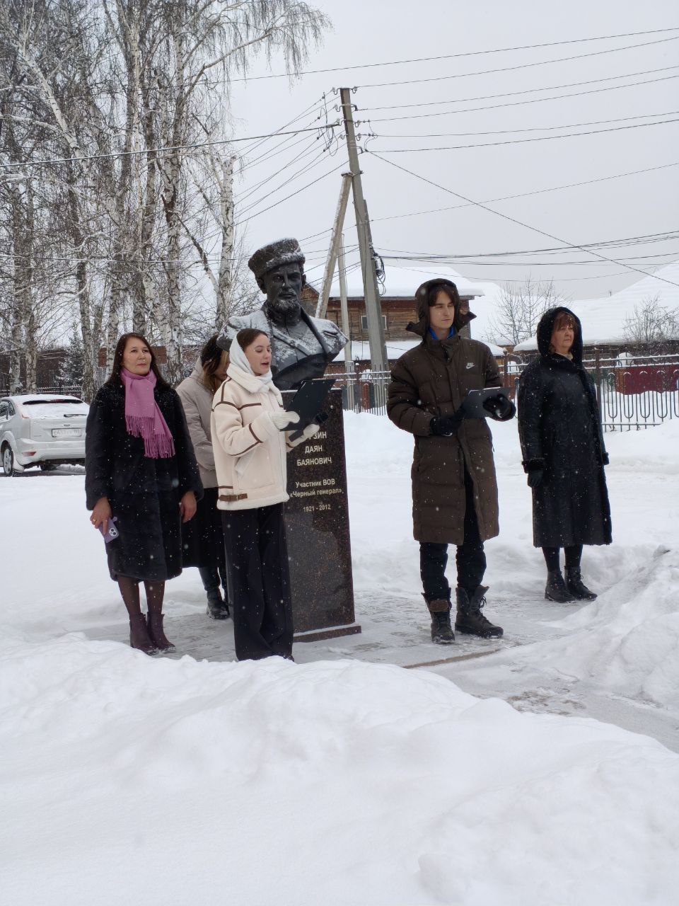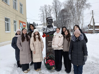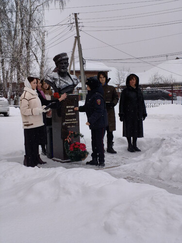Завершилось мероприятие церемонией возложения цветов к бюсту Героя. Участники почтили его память минутой молчания и возложили красные гвоздики — символ уважения и благодарности.